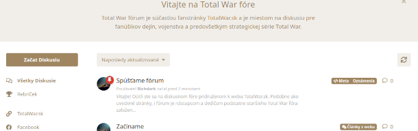 Po reinkarnovaní Total War fanstránky prichádza na scénu i znovuoživenie druhej dôležitej súčasti pôvodnej fanstránky - diskusné fórum forum.totalwar.sk.